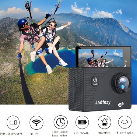WiFi Action Camera Ultra HD 1080P, 12MP Sports Camera Wide-Angle 2" LCD Screen, 30m/98ft Underwater Waterproof Camera with 2 Batteries and Accessories Kit for Helmet and Bicycle etc.